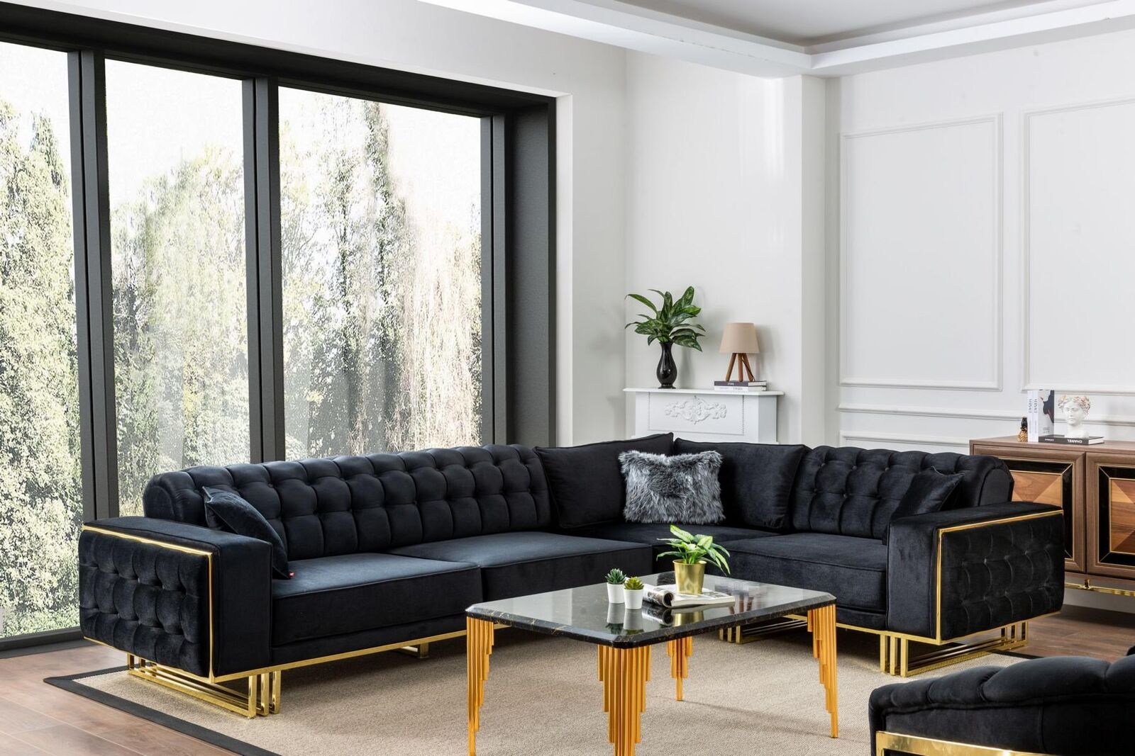 Návrhářská sada, obývací pokoj, Rozkládací pohovka v L tvaru, Luxusní nábytek
