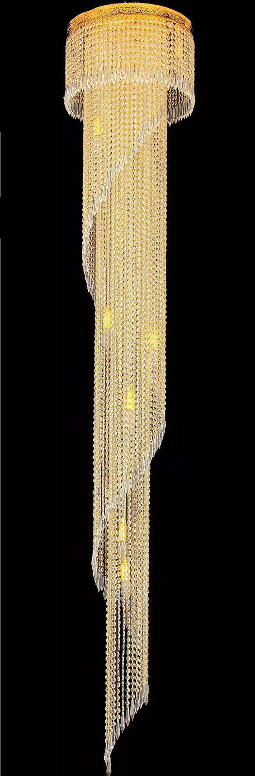Dlouhý galerijní lustr Velký lustr na strop Velký lustr stropní lampa Zlatý krystal 240 cm