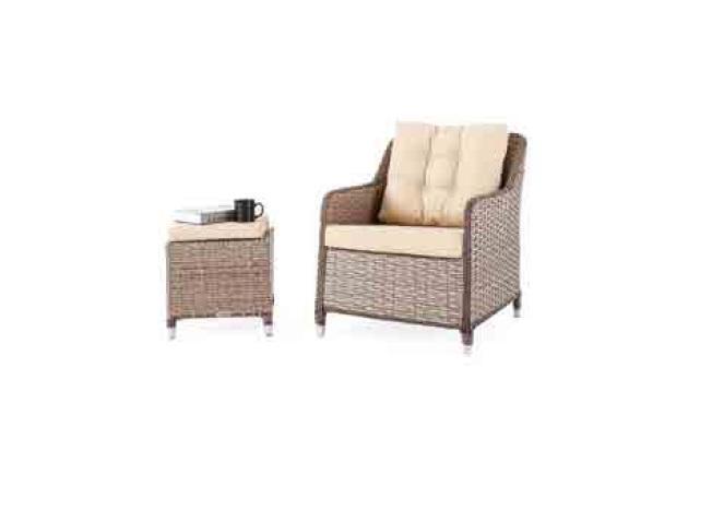 Venkovní nábytek, pohodlné židle, pohovka a set relaxace venku, zahradní dekorace.